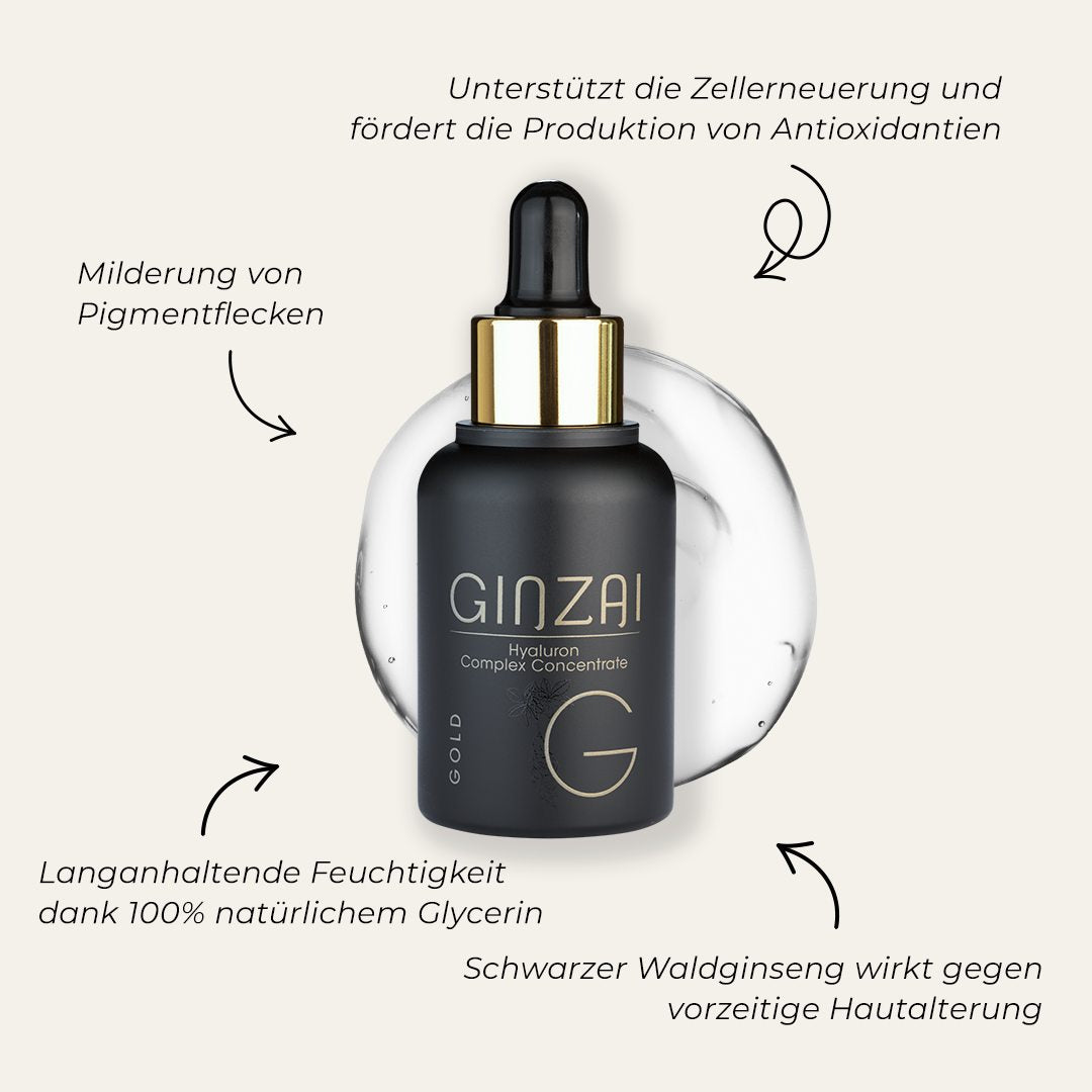 O ginseng silvestre é considerado há 5.000 anos a planta medicinal mais valiosa do mundo, e seu valor era comparado ao do ouro. A planta leva sete anos para desenvolver toda a sua densidade nutricional de 250 ingredientes. Crescendo selvagem e encontrada apenas em três pequenas regiões da Coreia do Sul, esta preciosa matéria-prima é colhida manualmente e posteriormente processada para os produtos de cuidados exclusivos GINZAI, especialmente concebidos para as necessidades da pele e do cabelo europeus. O processo G-Hiexponential, desenvolvido por nós e particularmente suave, garante que os ingredientes ativos especiais da raiz tenham uma alta biodisponibilidade e possam ser absorvidos de forma ideal pela pele. Com seu efeito adaptogênico, o ginseng preto da floresta também se adapta às necessidades da pele, oferecendo assim uma ampla gama de aplicações para todos os tipos de pele. Ele combate suavemente todos os problemas da pele, como ressecamento, impurezas ou sinais de envelhecimento, e restaura o equilíbrio natural da pele.